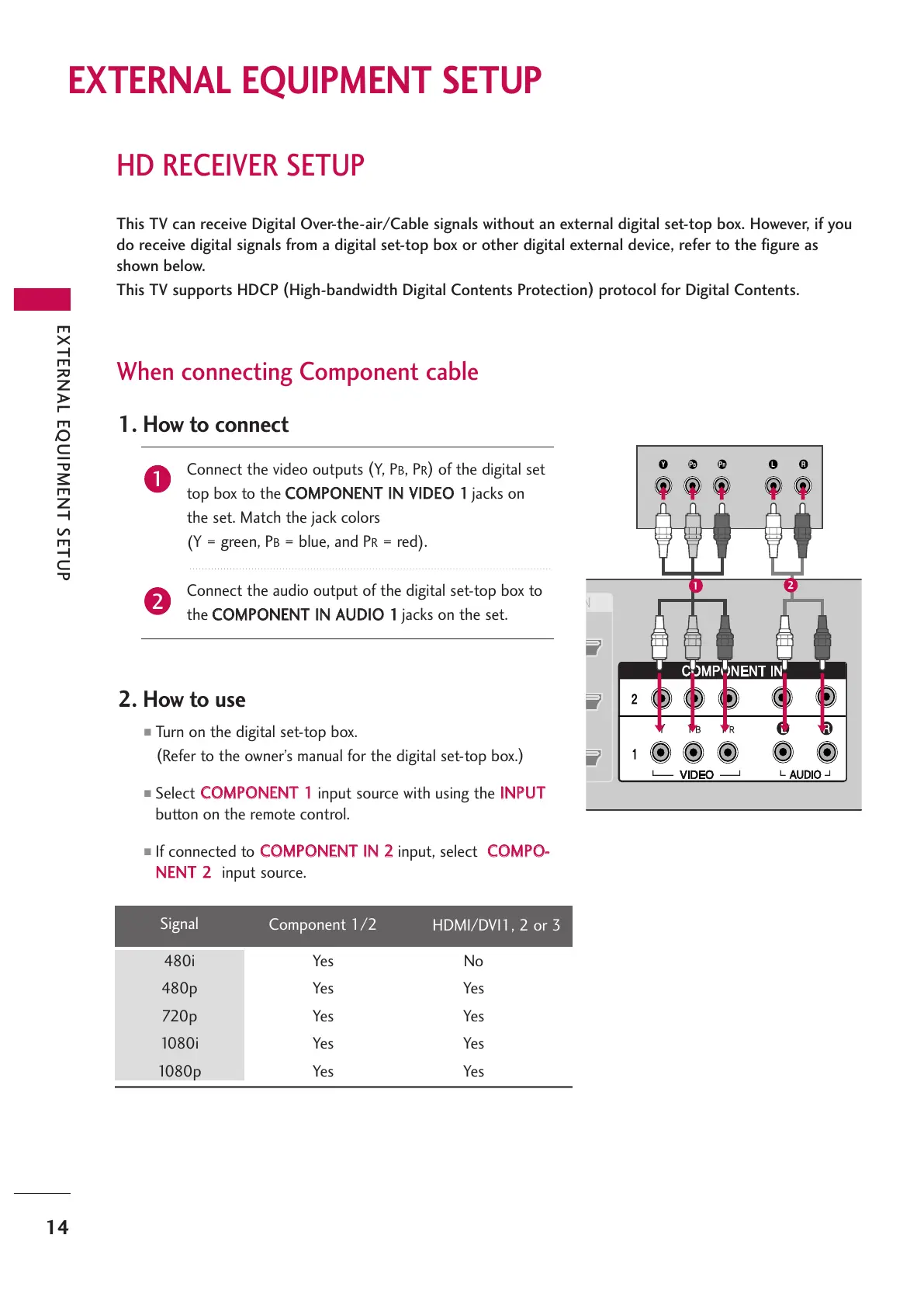 do receive digital signals from a digital set-top box or other digital external device, refer to the figure as