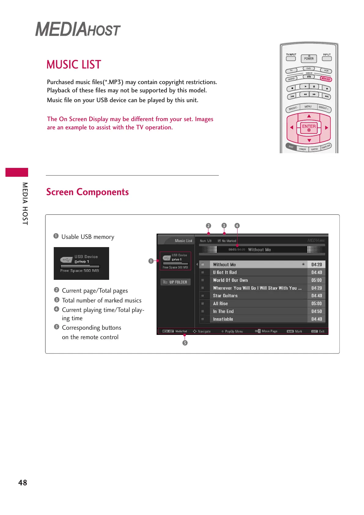 Purchased music files(*.MP3) may contain copyright restrictions.