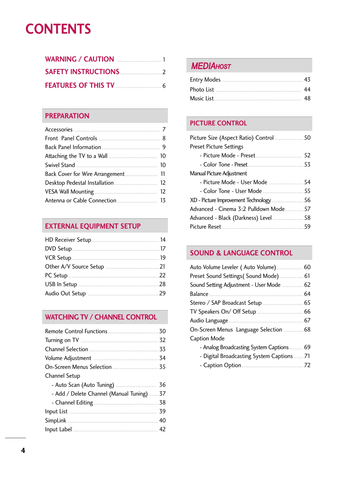 Preset Sound Settings( Sound Mode) . . . . . . . . . . . . . . 61