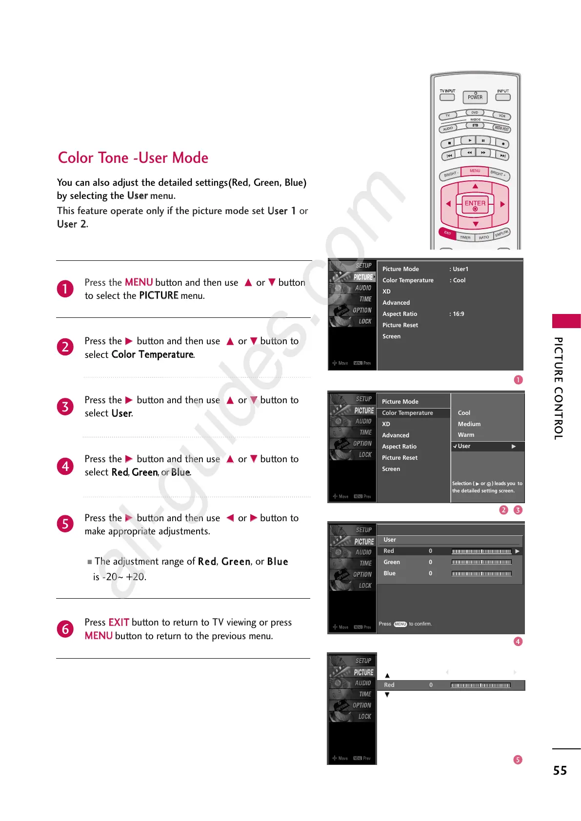 You can also adjust the detailed settings(Red, Green, Blue)