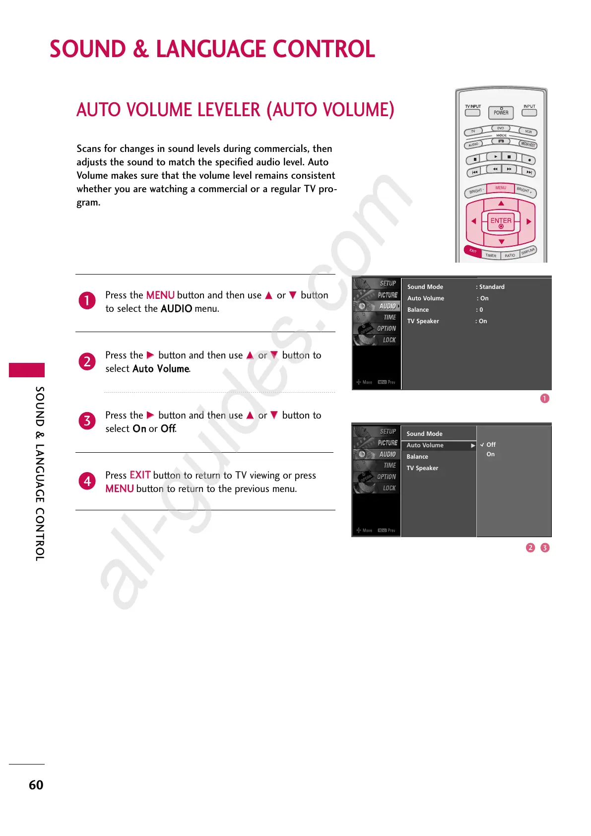 LG 52LY3D - Sound & Language Control; Auto Volume Leveler ( Auto Volume)