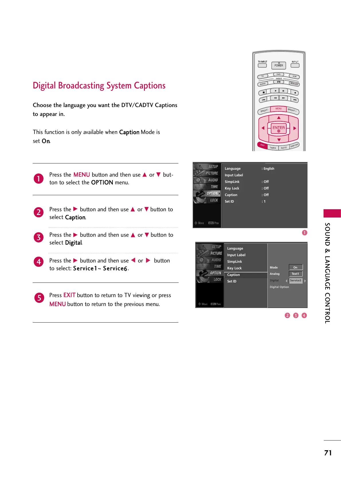 Choose the language you want the DTV/CADTV Captions
