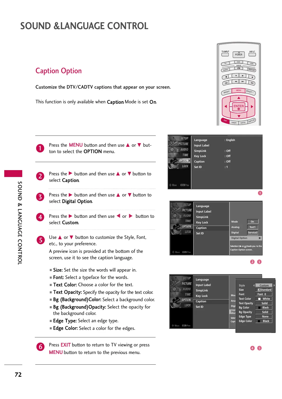 Caption Option screen.