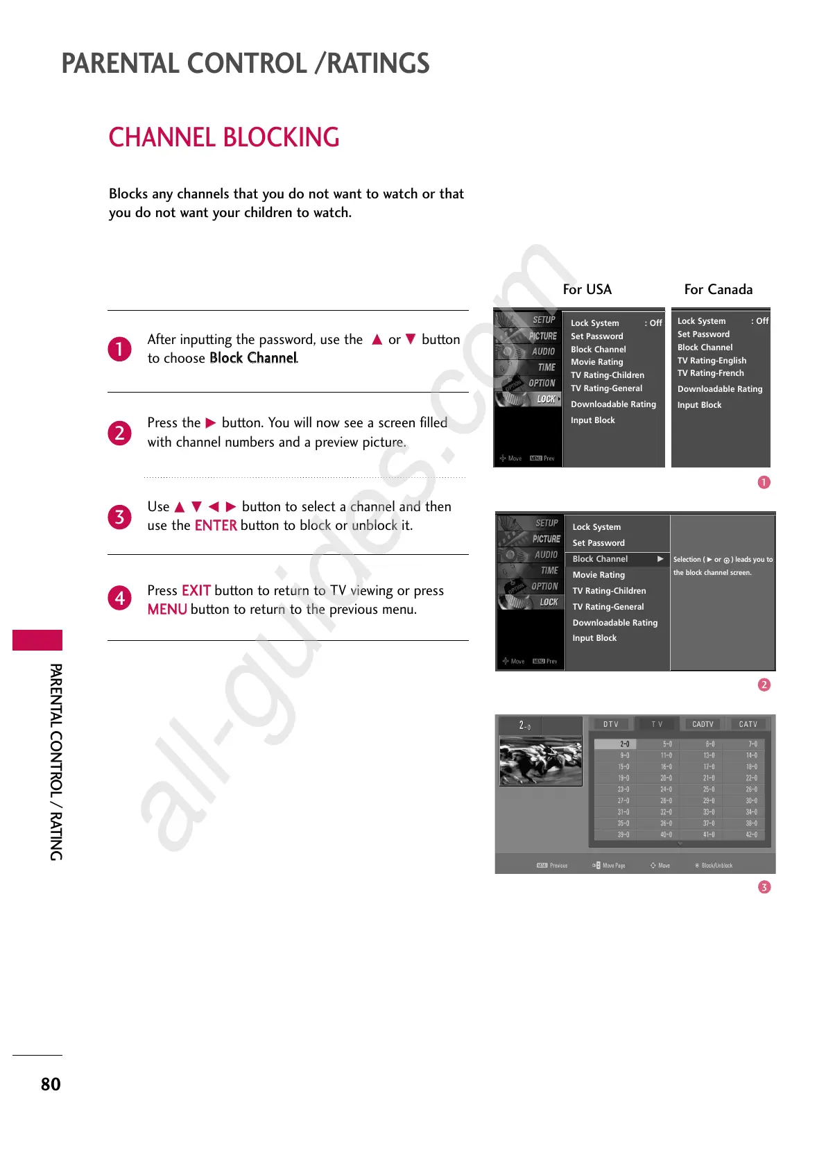 Blocks any channels that you do not want to watch or that