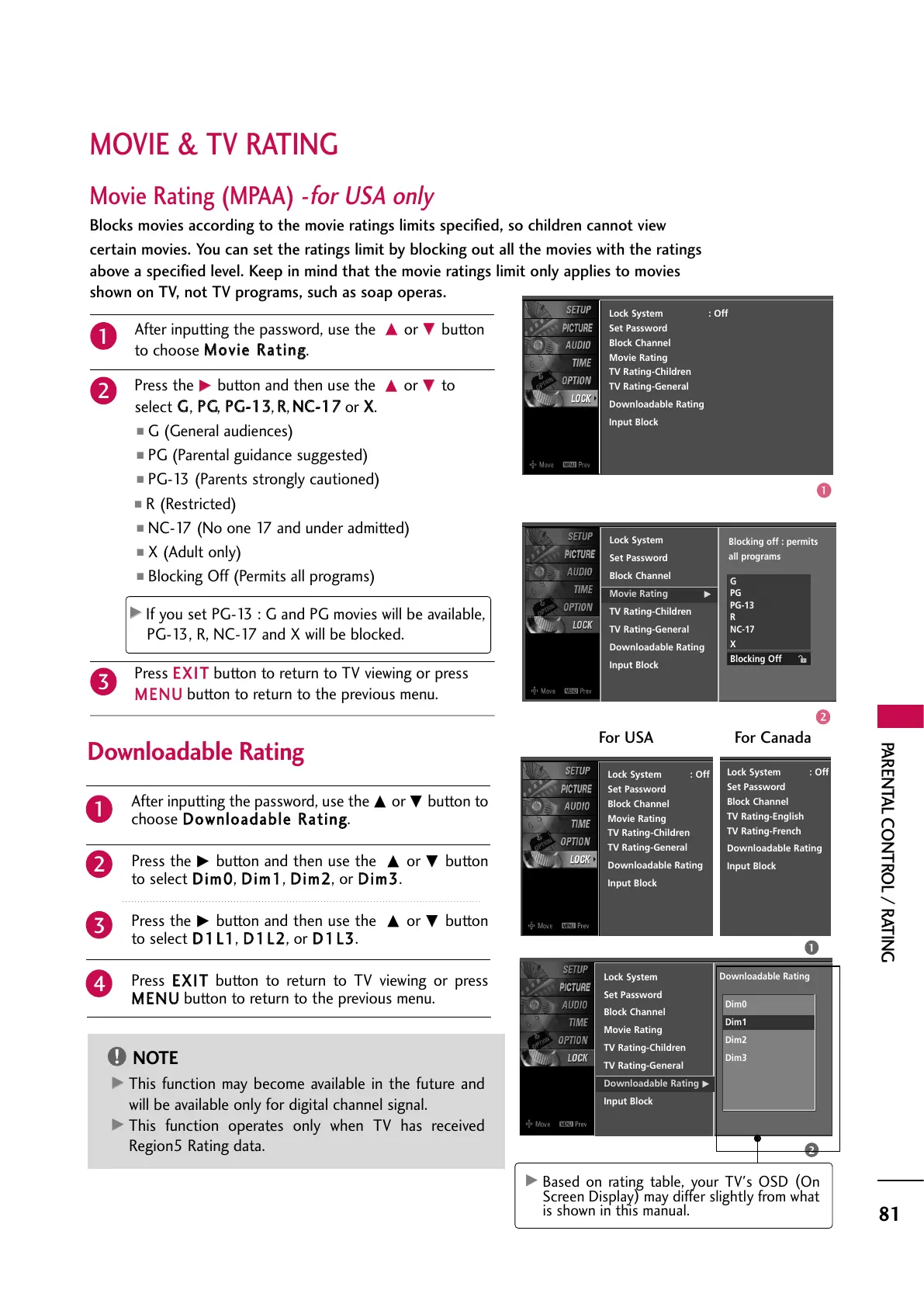 PARENTAL CONTROL / RATING