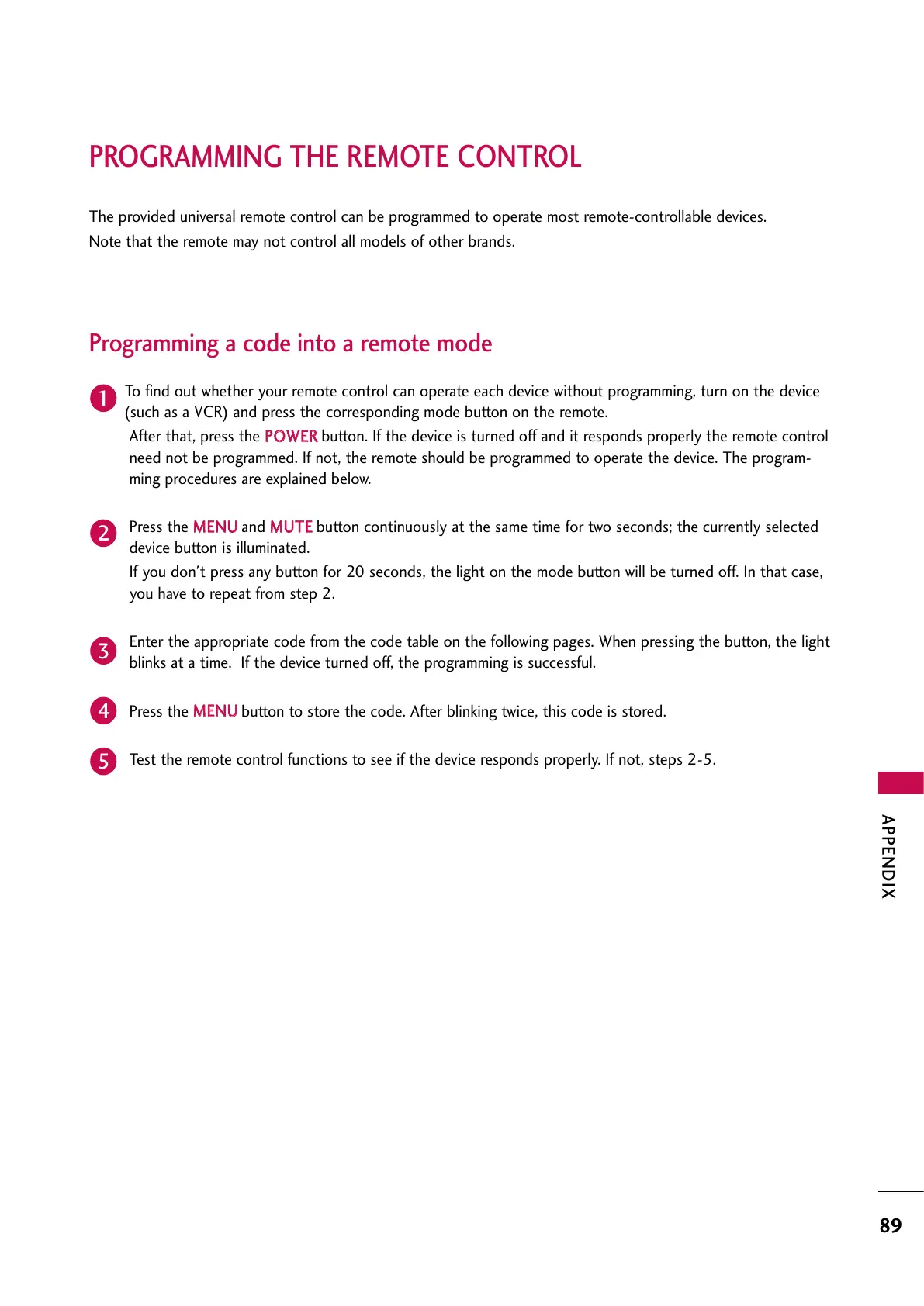 PROGRAMMING THE REMOTE CONTROL