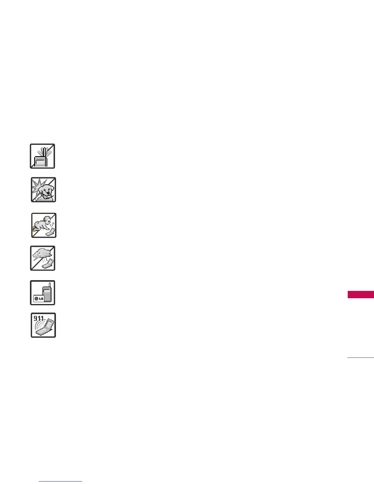 7. Only use the batteries and chargers provided by LG. The warranty will not be applied to