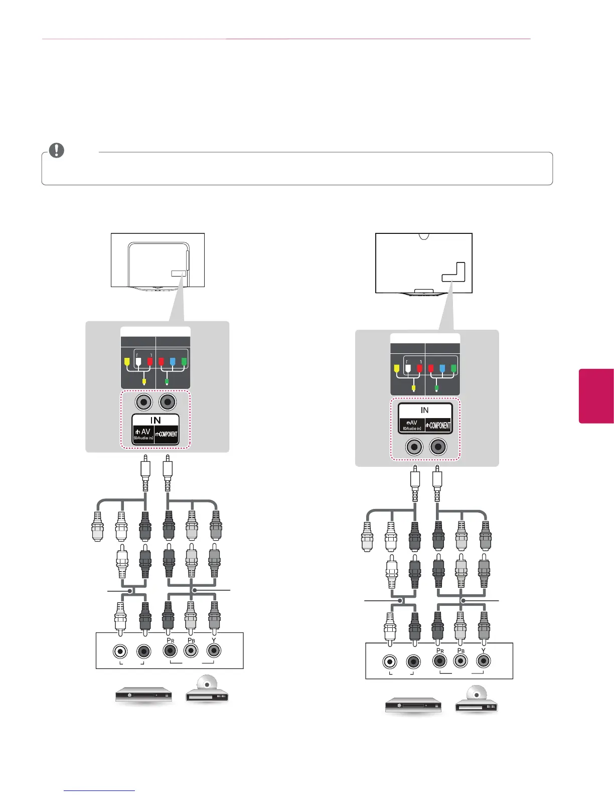 Transmits analog video and audio signals from an external device to the TV. Connect the external device and the TV with a component