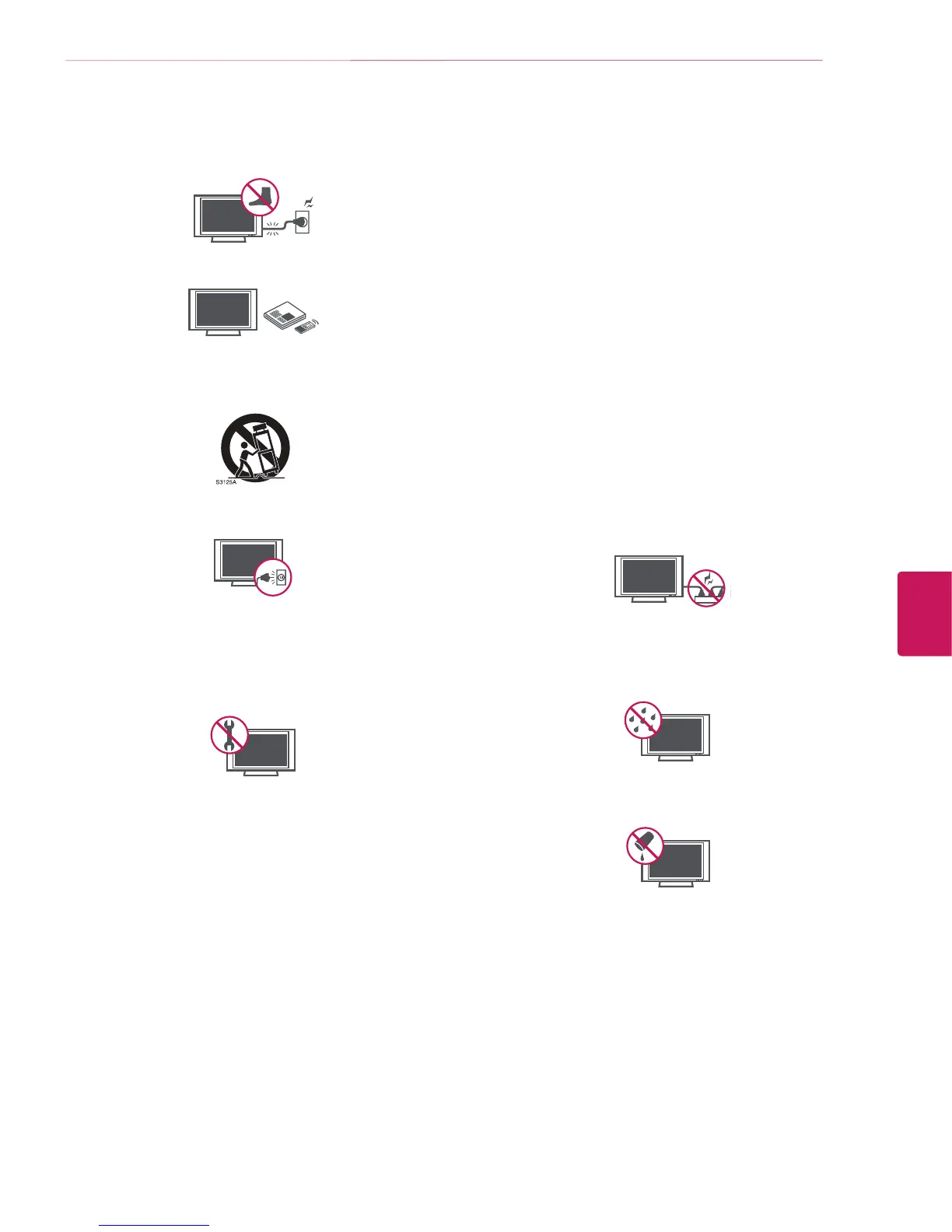 liquids. Do not touch the TV with wet hands. Do not install