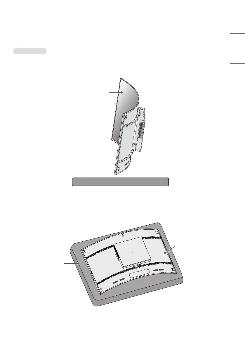 1 If the product needs to be set upright, hold both sides of the product and make sure that the panel does not touch