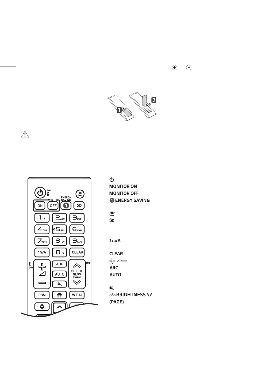 • Do not mix old and new batteries, as this may damage the remote control.