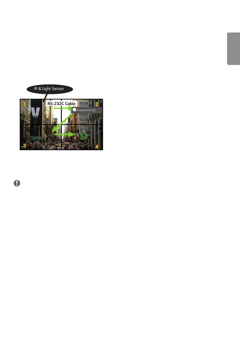 [Picture ID] is used to change the settings of a specific set (display) using a single IR receiver for multi-vision.