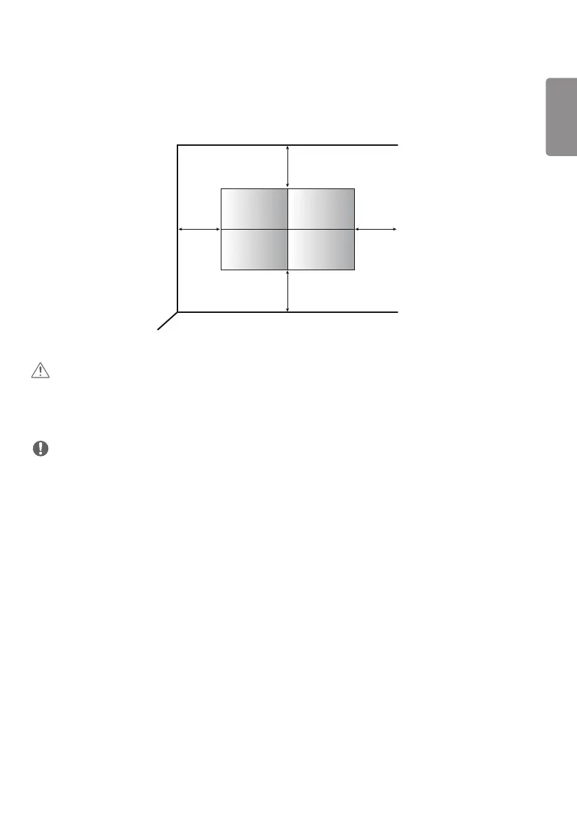 • If you install the monitor on a ceiling or slanted wall, it may fall and result in injury. Use the screws and wall mount