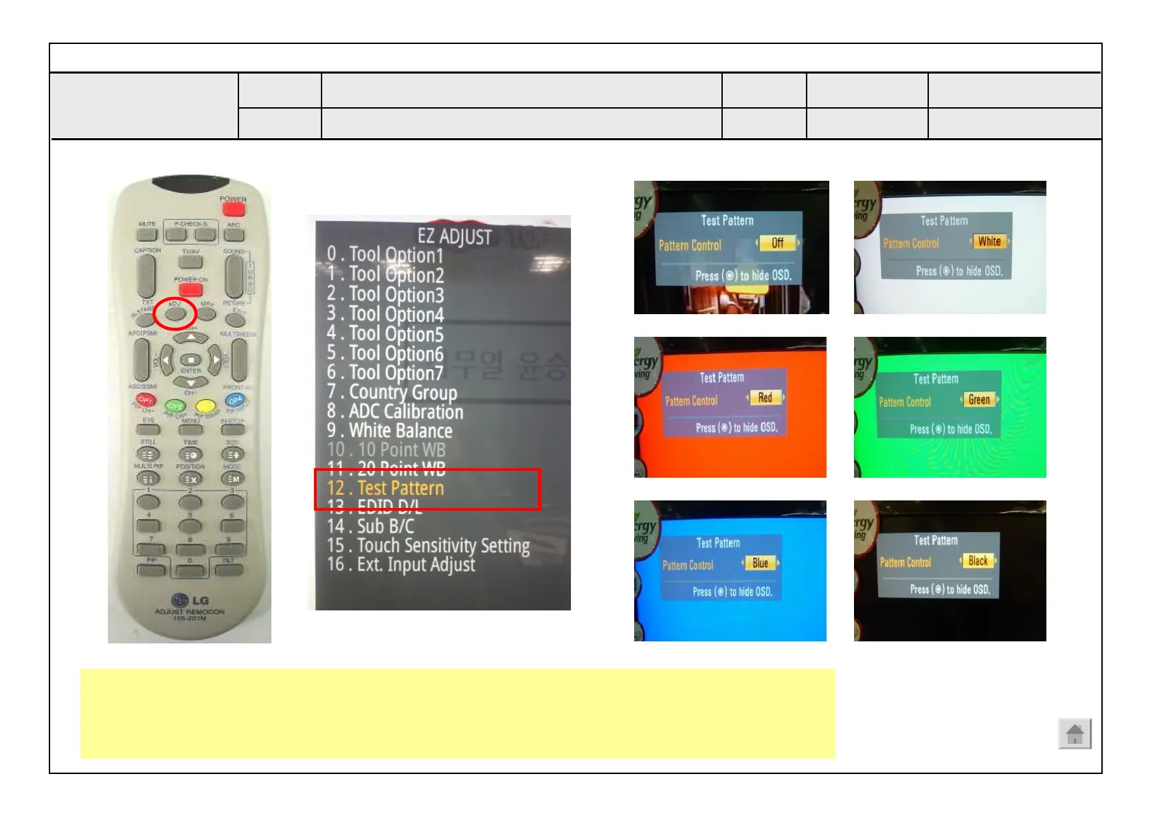 Adjustment Test pattern - ADJ Key