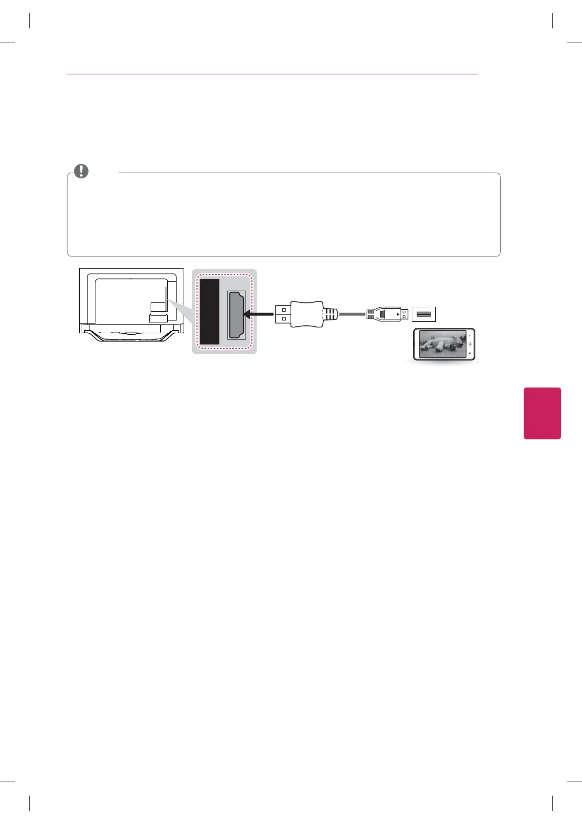 An MHL passive cable is needed to connect the TV and a mobile phone.