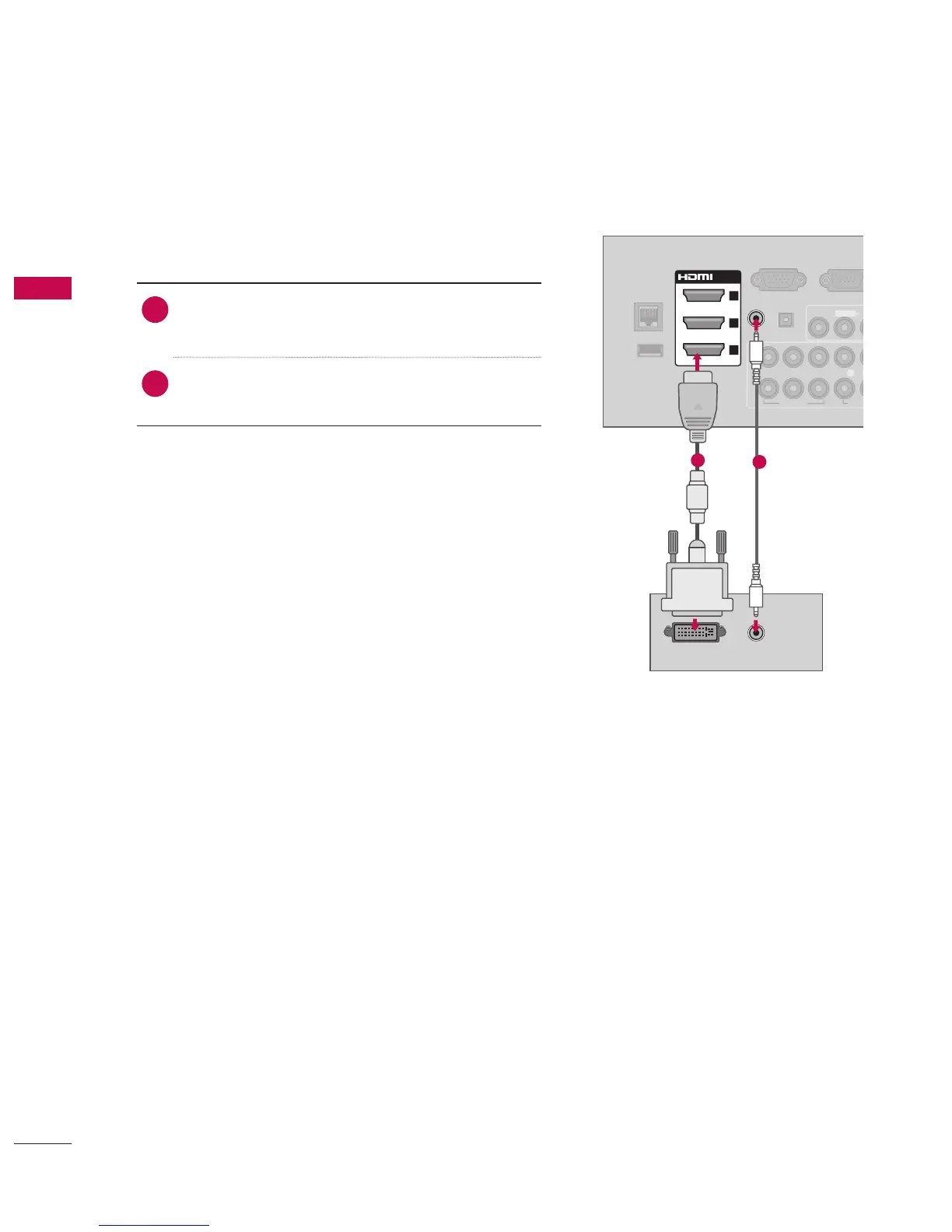 Connect the DVI output of the PC to the HDMI/