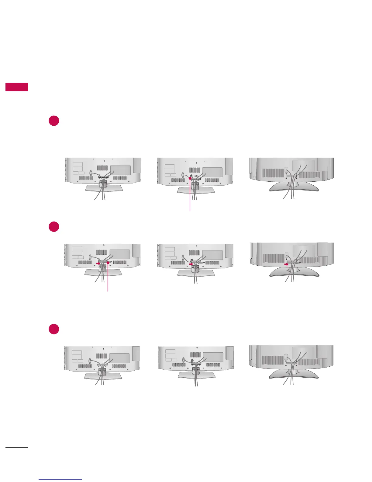 Secure the power cord with the PROTECTIVE BRACKET/SCREW on the TV back cover. It will