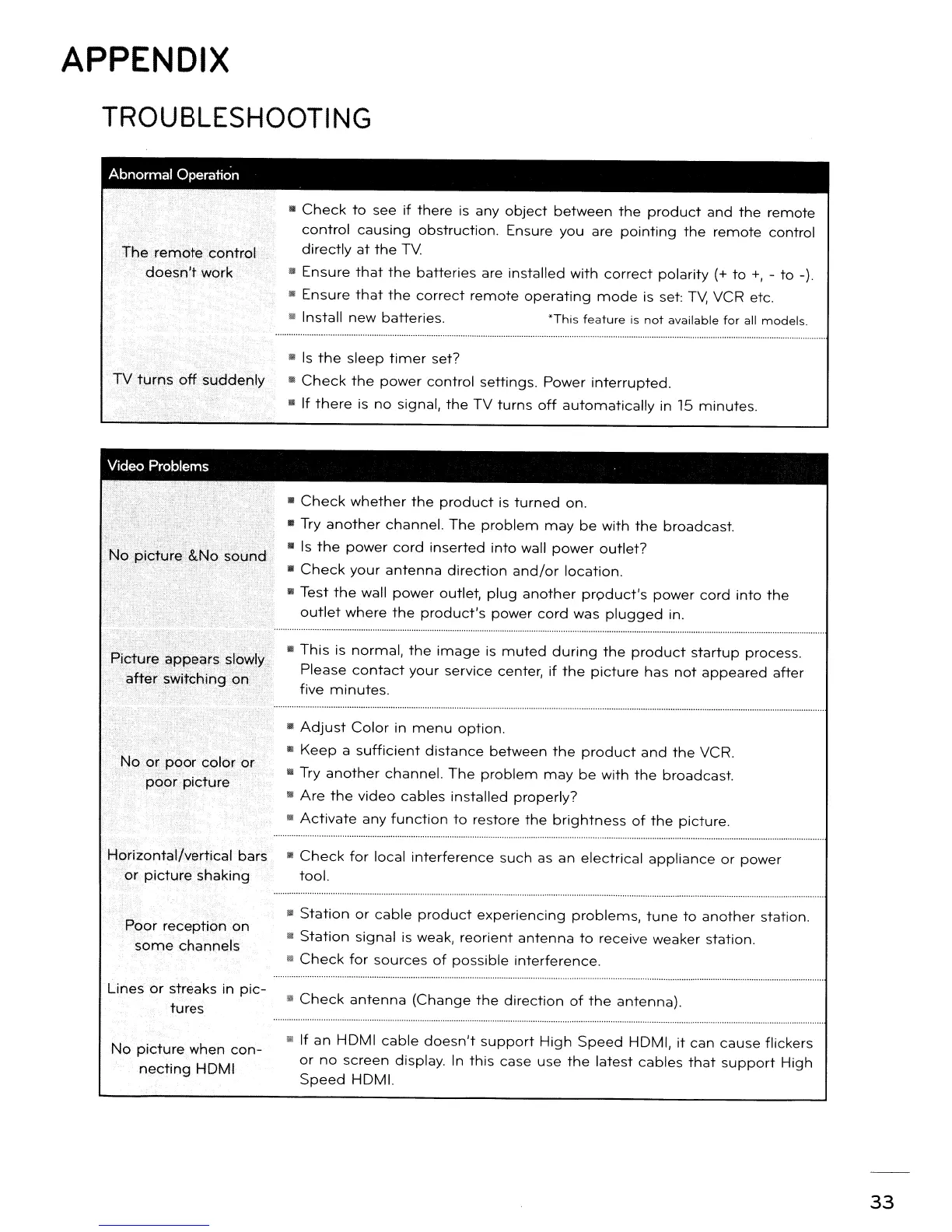LG 55LD650 - APPENDIX Troubleshooting