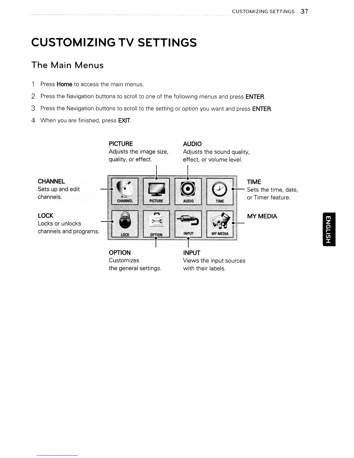 LG 55LK520 - Customizing TV Settings; Main Menus Overview