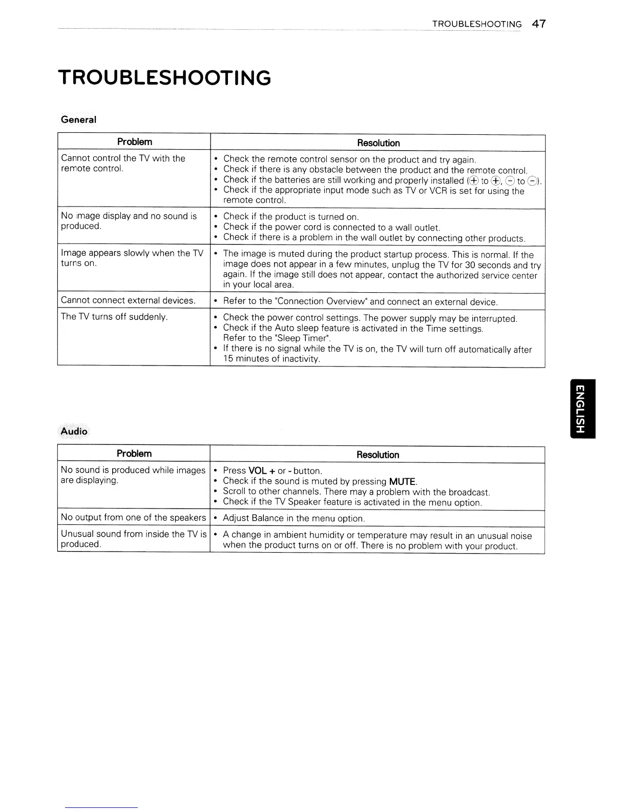 Cannot connect external devices. • Refer to the 'Connection Overview' and connect