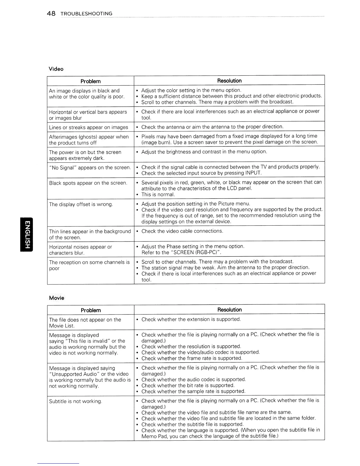 Lines or streaks appear on images • Check the antenna or aim the antenna to the proper direction.