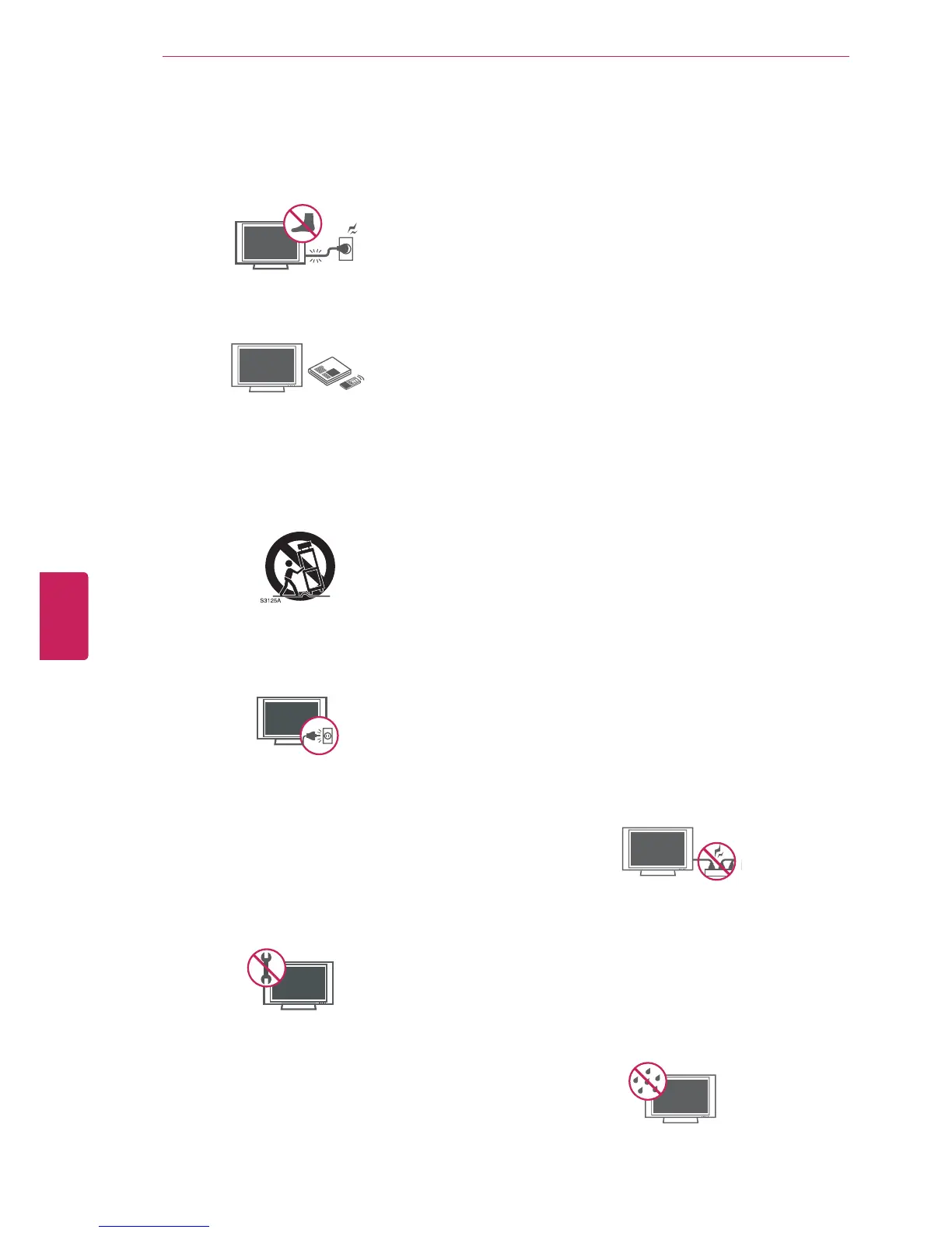 touch the TV with wet hands. Do not install