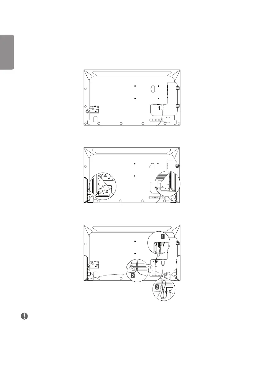 2 Mount the speakers by using screws as shown below. Make sure the power cable is disconnected before making a