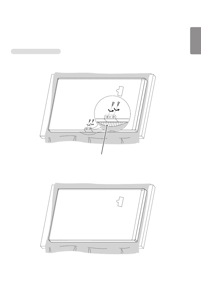 1 Lay a clean cloth on the floor, and then put the monitor on it with the screen face down. Remove the two screws