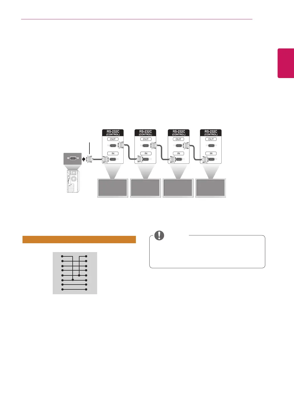 The RS-232C protocol is used for communication between the PC and product. You can turn the