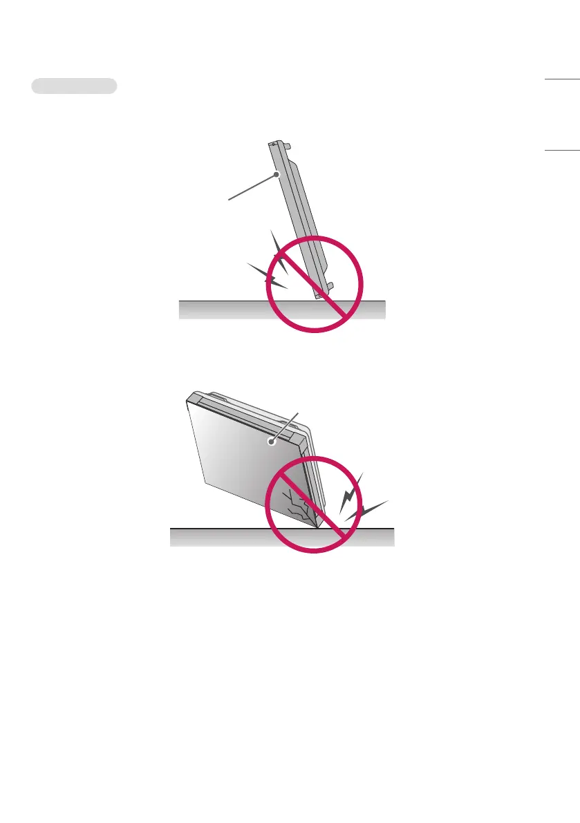 1 If the product is tilted onto the bezel, the bottom of the panel may be damaged.