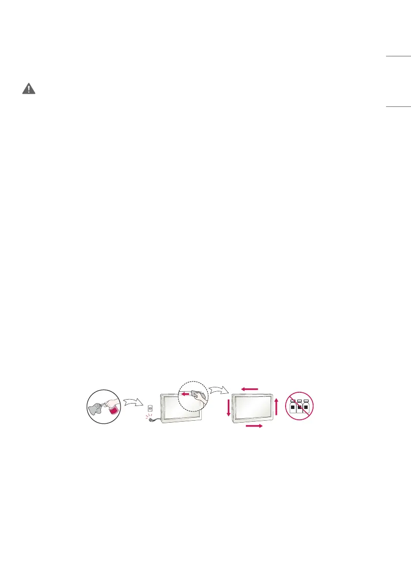 • Do not press on the panel with a hand or sharp object such as nail, pencil or pen, or make a scratch on it.