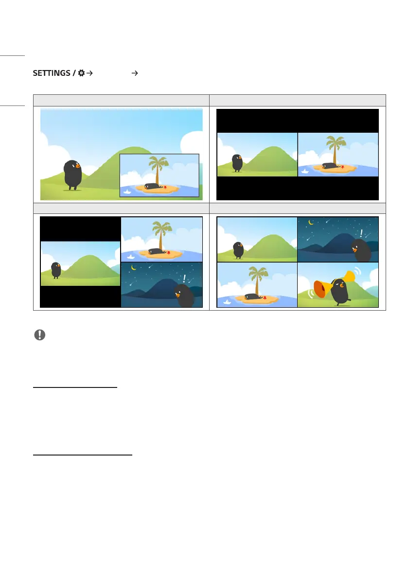 This feature allows you to view multiple external inputs and videos on a single screen.