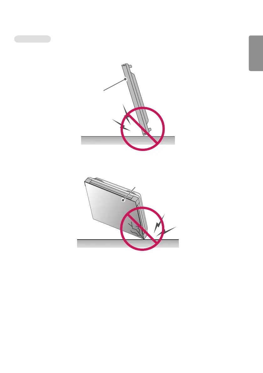 1 If the product is tilted onto the bezel, the bottom of the panel may be damaged.