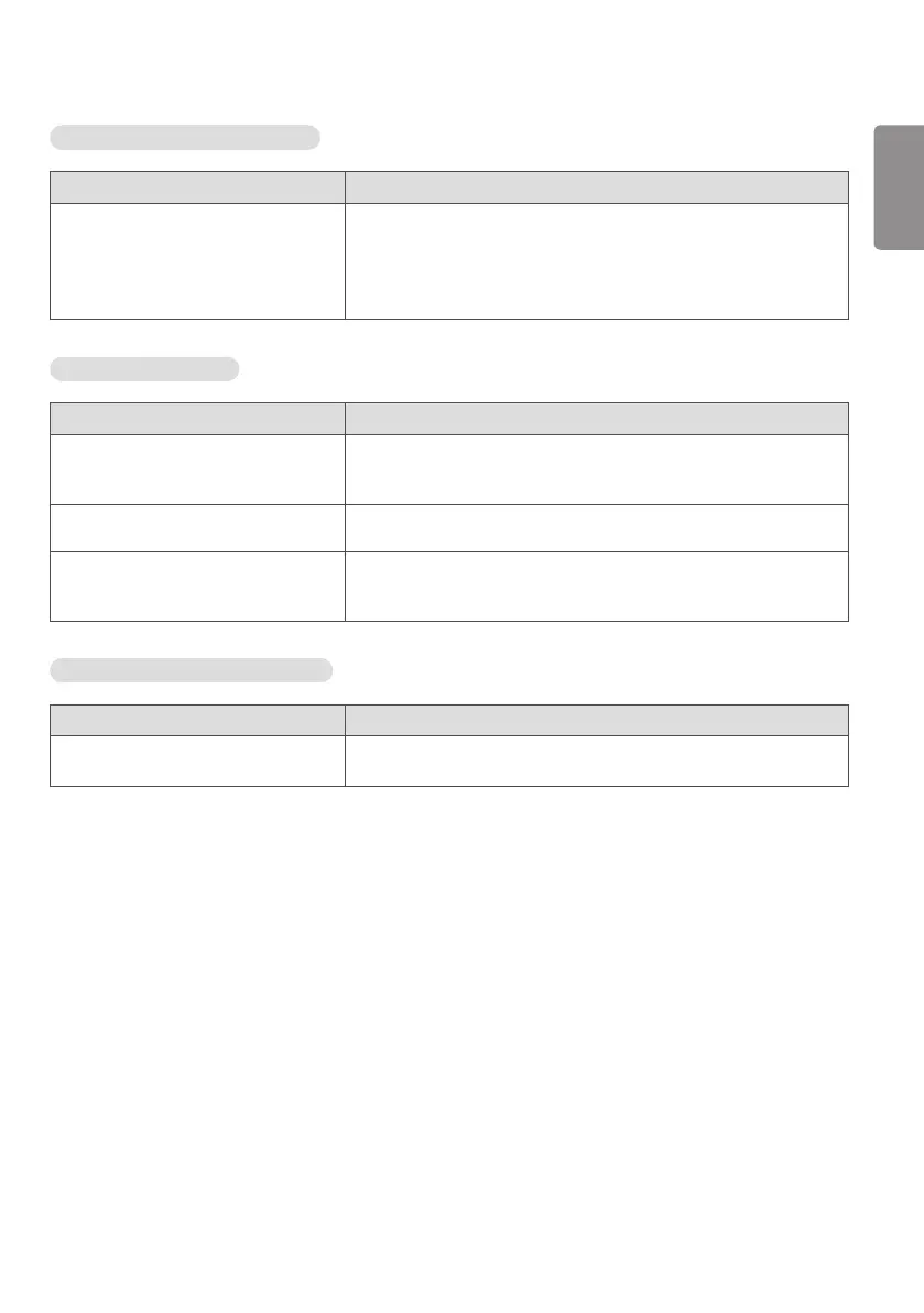 Screen color is unstable or mono-colored. • Check the connection status of the signal cable. Or, re-insert the PC