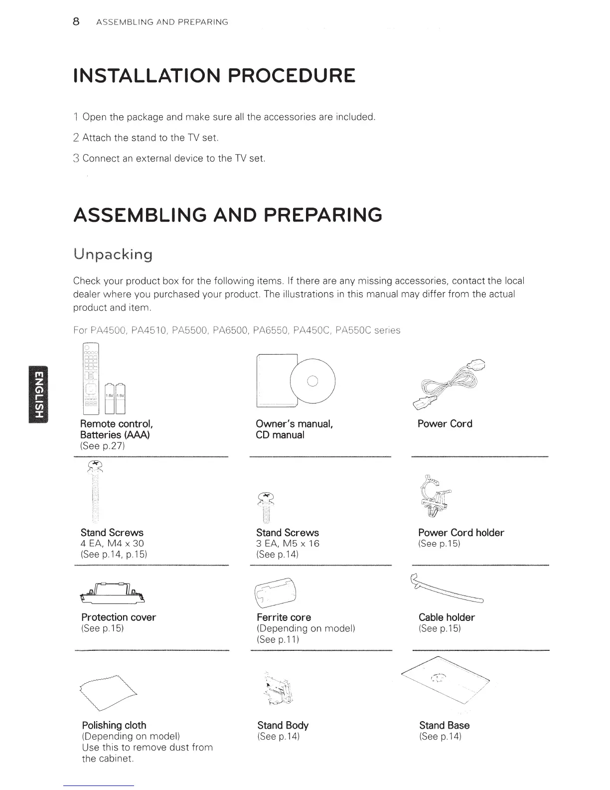 Check your product box for the following items. If there are any missing accessories, contact the local