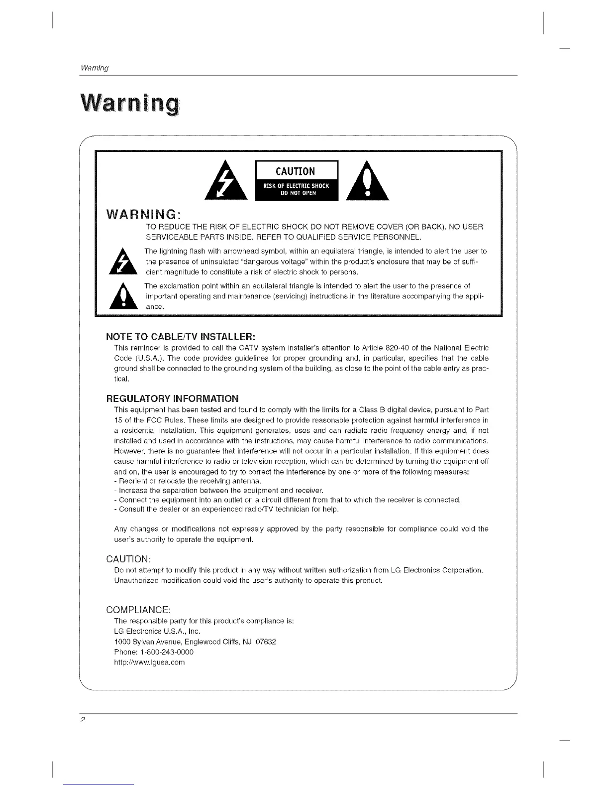 Do not attempt to modify this product in any way without written authorization from LG Electronics Corporation.