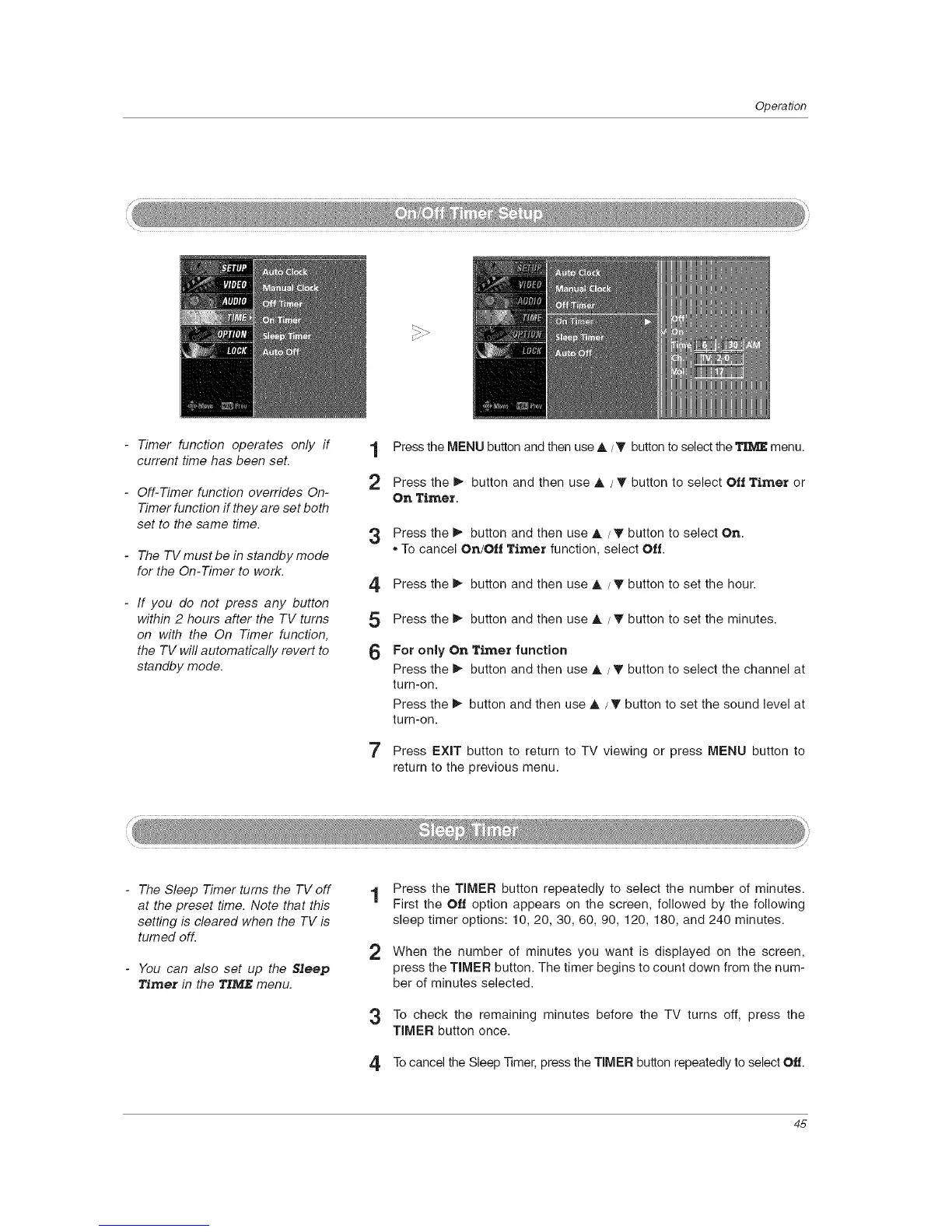 - Off-Timer function overrides On-