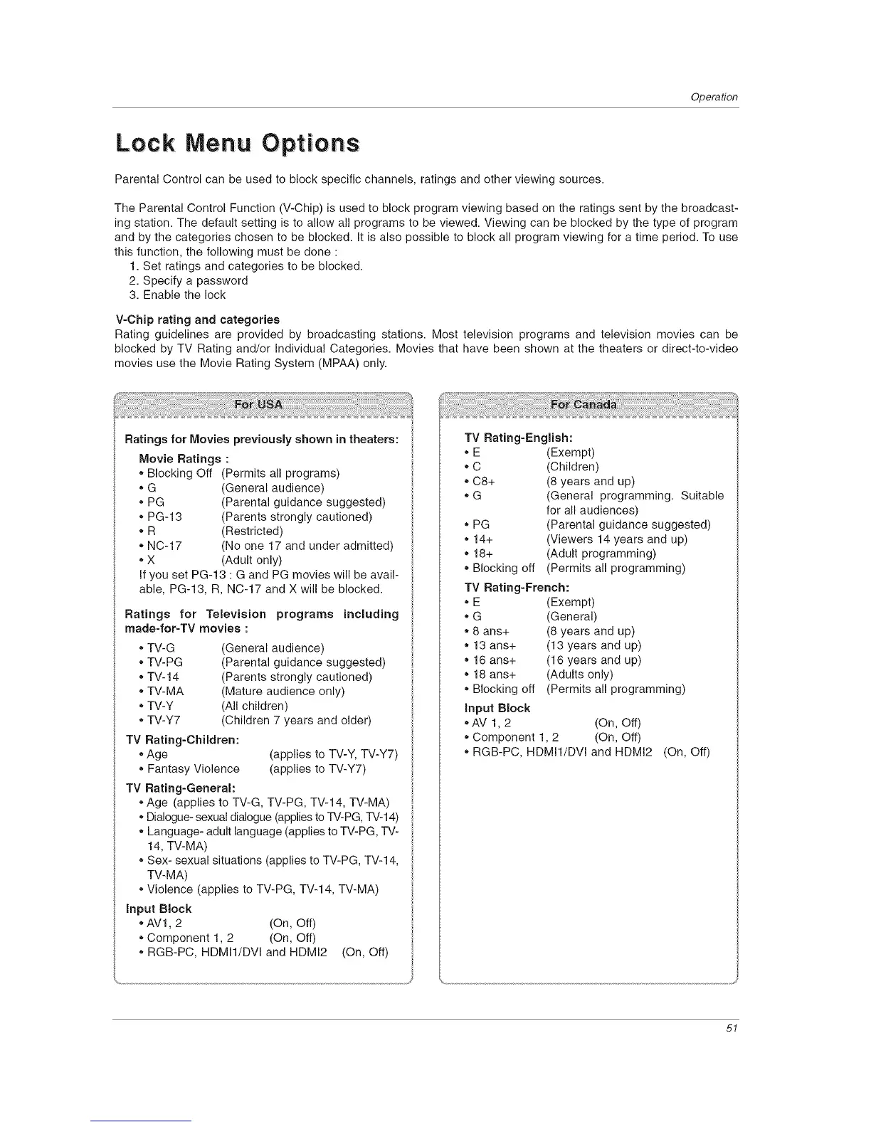 ing station. The default setting is to allow all programs to be viewed. Viewing can be blocked by the type of program