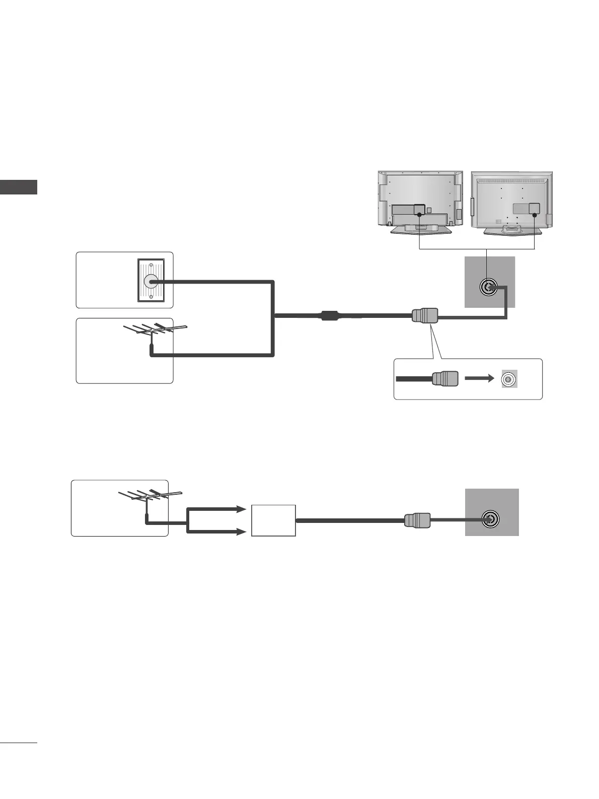 If signal needs to be split for two TVs,use an antenna signal splitter for connection.