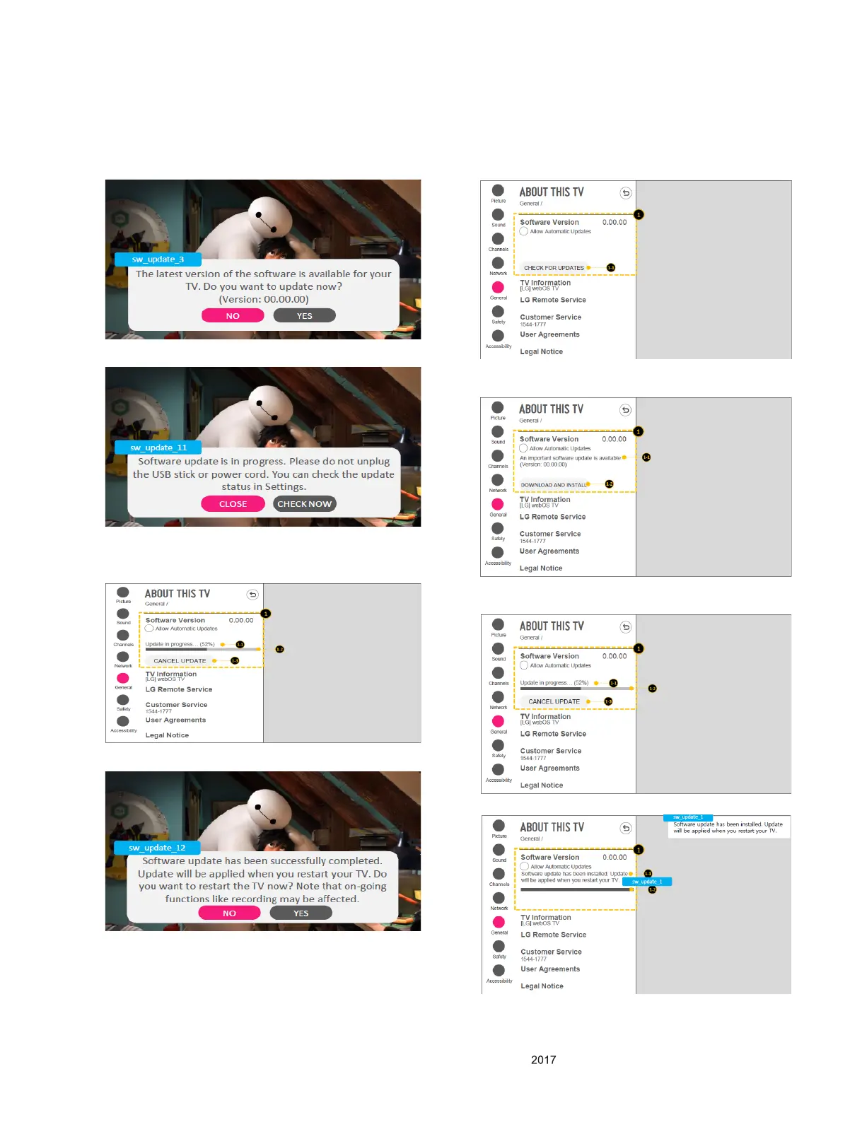 (6) Turn OFF the TV and On. Check the updated SW Version