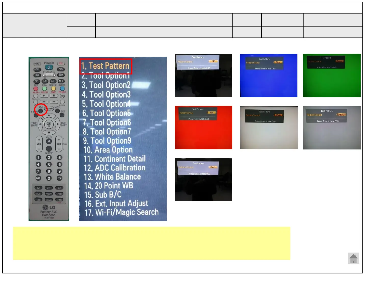 Adjustment Test pattern - ADJ Key