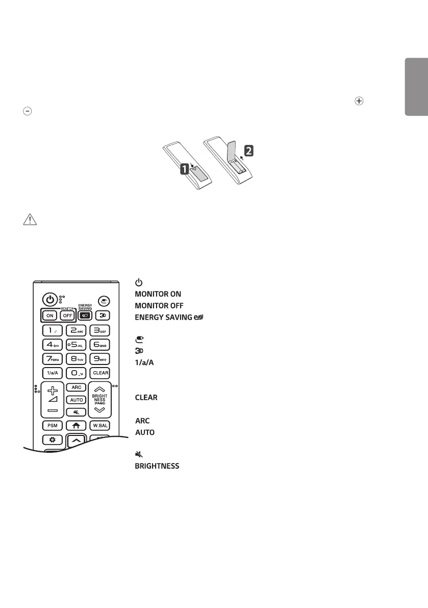 • Do not mix old and new batteries, as this may damage the remote control.