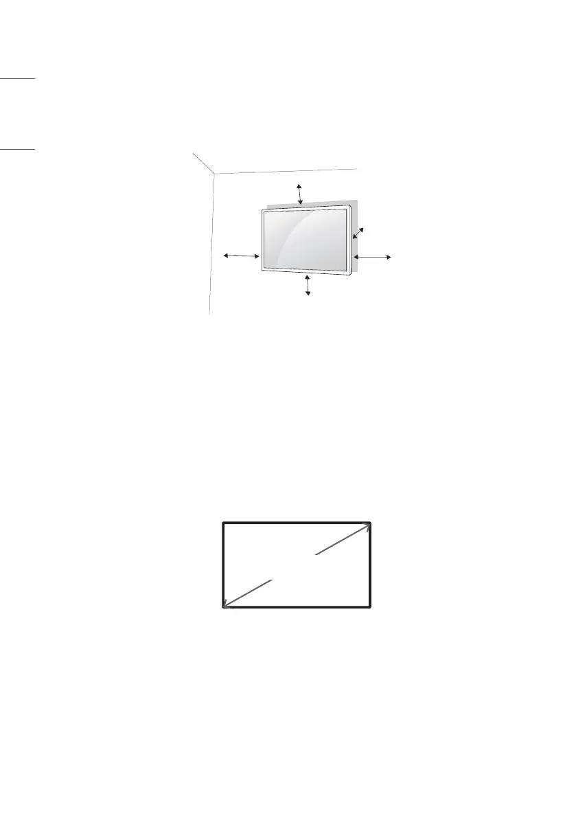 For proper ventilation, allow a clearance of 100 mm (3.9 inches) on each side and from the wall. Detailed installation