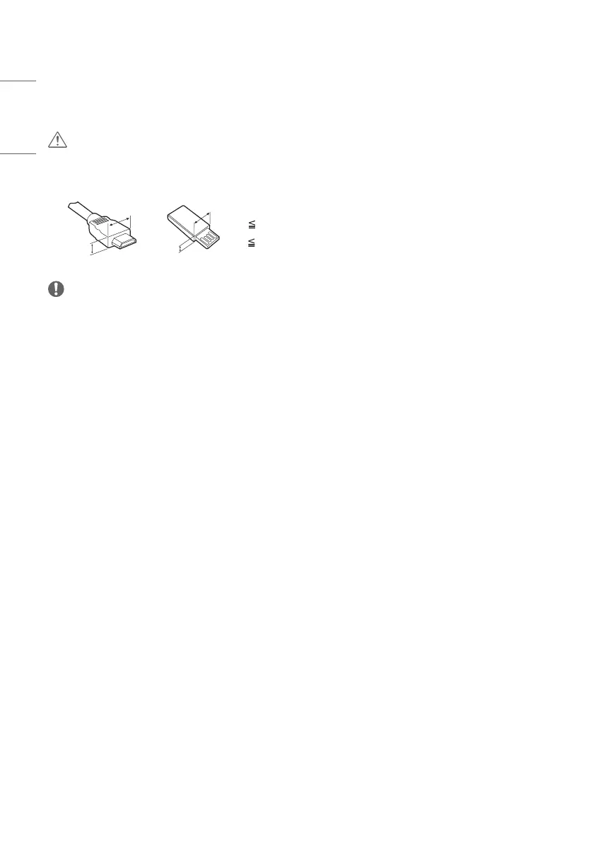 • Use a product with the following thickness for optimal connection to HDMI cable/USB device.