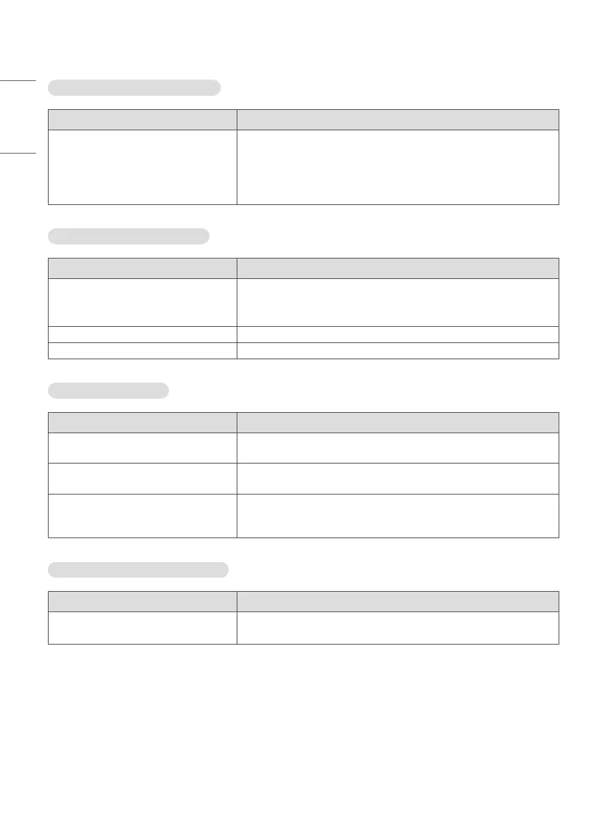 Screen color is unstable or mono-colored. • Check the connection status of the signal cable. Or, re-insert the PC