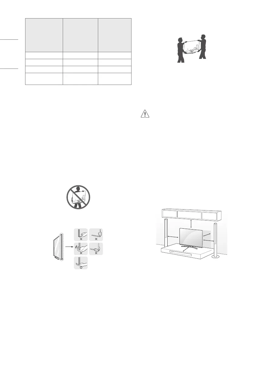 • Hold the top and bottom of the TV frame rmly. Make sure not to