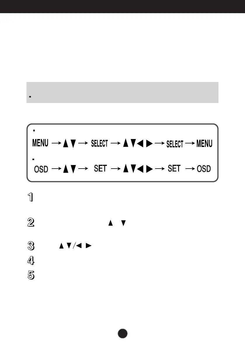 To make adjustments in the On Screen Display, follow these steps: