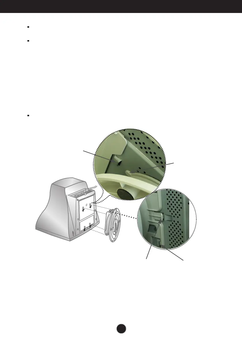 1. Align the hooks on the tilt/swivel stand with the matching slots in the base of