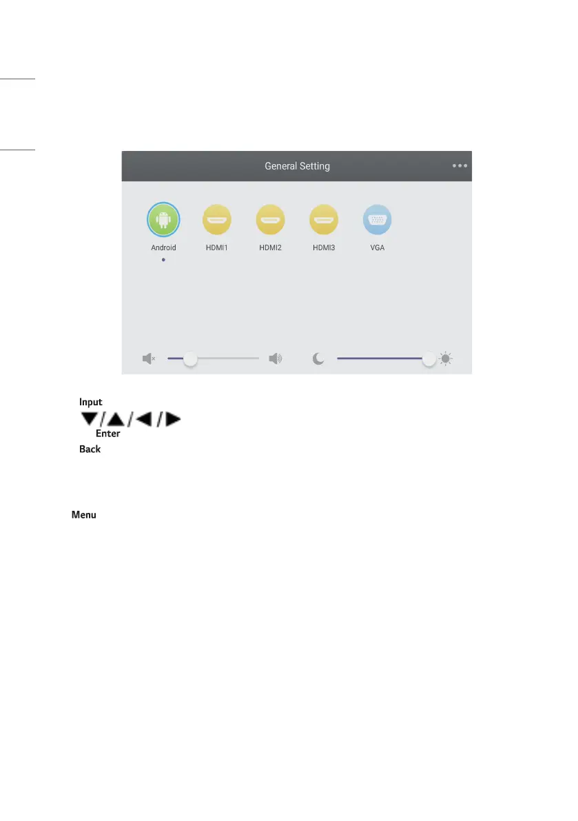 • Press button on remote control or via touch A method to call up [General Setting] menu.