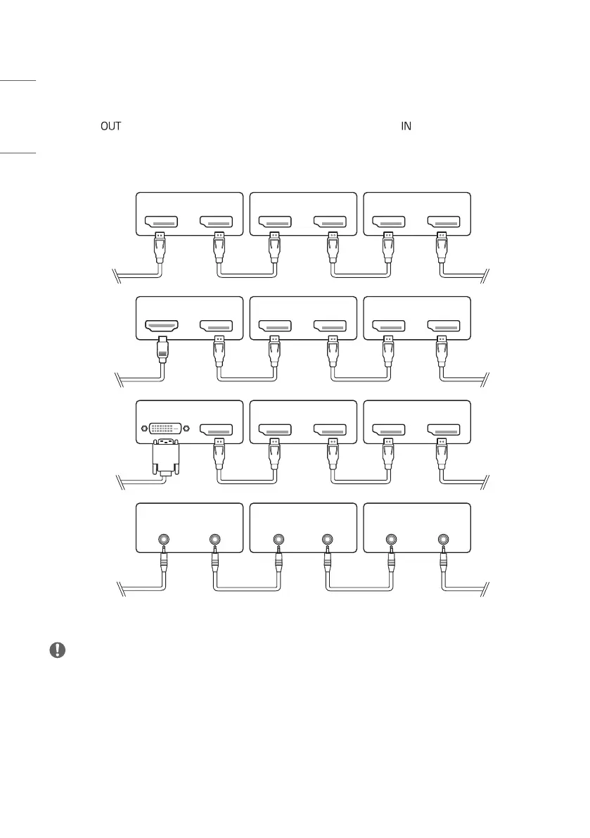 • In general, up to 100 monitors can be connected via the DP OUT port (at the recommended resolution) if the signal is